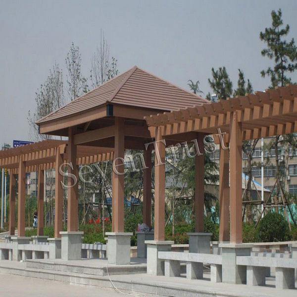 2.木塑涼亭從各個方向的各個角度看,它都是獨立完整的,精致而輕巧的,非常適合花園的要求